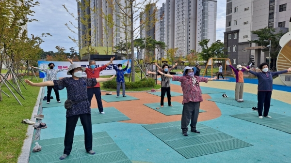 9988행복나누미‘들썩들썩 돗자리 경로당’은 코로나19로 위축된 어르신들의 일상에 활력을 주기 위해 야외에서 레크리에이션, 실버체조 등 여가프로그램을 진행한다.