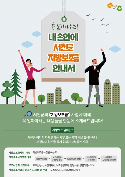[충청뉴스큐] 서천군은 이달 6일 지방보조금의 사용 및 사업추진에 관한 내용을 보조사업자들이 쉽게 이해할 수 있도록 내 손안에 지방보조금안내서를 제작해 배부한다고 전했다.