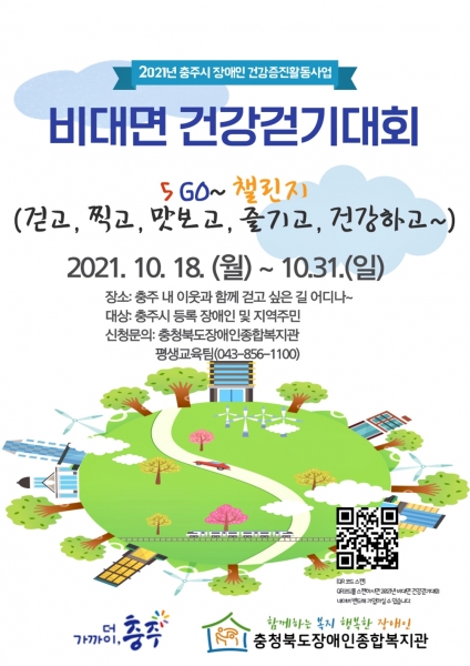 [충청뉴스큐] 충청북도장애인종합복지관은 충주시의 지원을 받아 장애인 건강증진활동 사업의 일환으로 오는 18일부터 31일까지 2주간 ‘비대면 건강 걷기대회’를 실시한다.