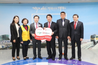[충청뉴스큐] 권영진 대구시장은 2019년도 적십자 회비모금에 시민들의 자발적 참여를 유도하기 위해 21일 오후 2시 30분 시장 접견실에서 특별회비 5백만 원을 전달했다.