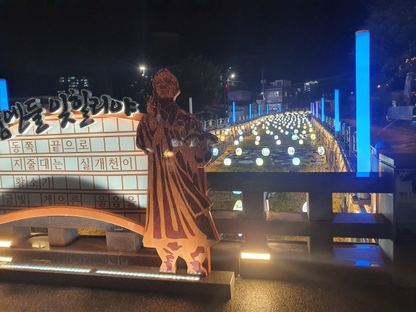 지용제의 배경인 구읍에는 실개천을 따라 형형색색의 등불이 불을 밝히는 건 물론 집집마다 정지용 시 등이 걸려 구읍 야경을 수놓고 있다.