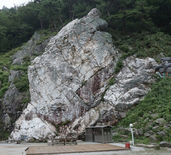 특히 대규모의 흰색 석영맥이 관입한 특이한 구조를 보여준다는 점에서 학술적으로 가치가 높다.