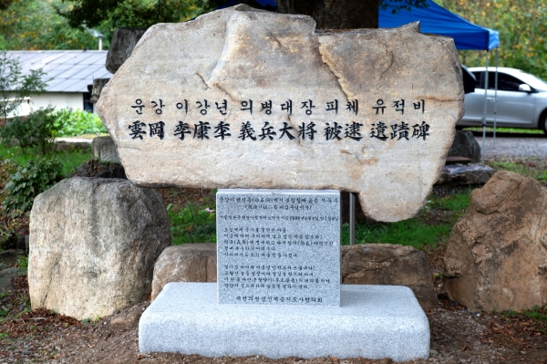 지난주 전시회에 이어 12일 올해 5번째 기념사업으로 독립운동가 운강 이강년 선생의 업적을 기리며 이강년 선생이 금성면 포전리에서 일제에 체포되었던 것을 기억하기 위해 피체비를 설치하고 제막식을 개최했다.