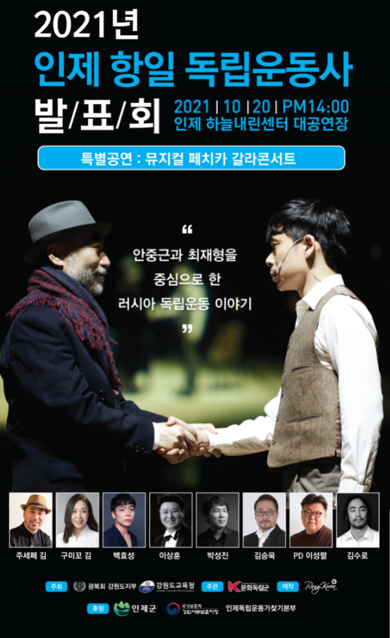 ‘인제 항일 독립운동사 발표회’는 항일 독립운동의 가치를 재조명해 후손들의 자긍심을 고취하고 역사를 돌아보며 앞으로 만들어갈 100년을 설계하는 진취적인 민주시민을 양성하기 위해 마련된 행사이다.