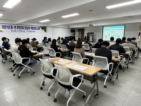 [충청뉴스큐] 서천군은 지난 19일 읍·면 주민자치 담당 공무원 및 주민자치 행정매니저 26명을 대상으로 ‘읍·면 주민자치 담당자 역량강화’ 교육을 실시했다.