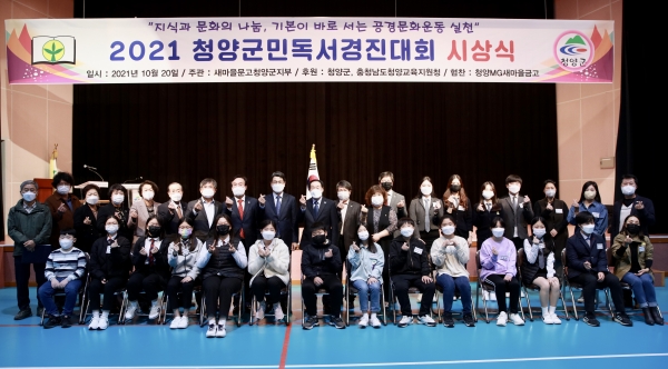 [충청뉴스큐] 새마을문고 청양군지부가 지난 20일 청양문화체육센터에서 2021년 청양군민 독서경진대회 시상식을 열고 입상자를 표창했다.