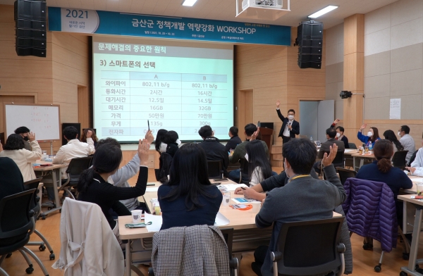 [충청뉴스큐] 금산군은 군정 실무추진을 맡는 7급 공무원의 정책 개발·기획 역량 강화를 위해 지난 10월 20일부터 22일까지 3회차에 걸쳐 진산애행복누리센터에서 정책개발 역량강화 워크숍을 성료했다.