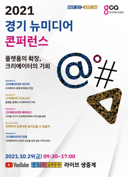 [충청뉴스큐] 경기도가 ‘크리에이터’의 미래를 살피고 새로운 미디어 생태계를 준비하기 위해 ‘2021 경기 뉴미디어 콘퍼런스’를 오는 29일 오전 9시 30분부터 오후 5시까지 온라인으로 개최한다.