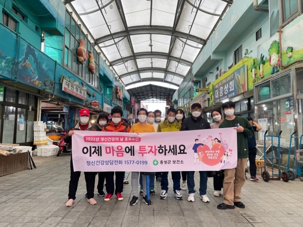 ‘정신건강의 날’은 정신건강의 중요성을 환기하고 정신질환에 대한 편견을 해소하기 위해 지정된 법정 기념일로 홍성군은 지속된 코로나19와 사회적 거리두기 장기화로 지친 군민의 마음건강 회복을 위해‘이제 마음에 투자하세요’라는 슬로건으로 유관기관 및 정신질환자와 함께 정신건강 홍보 캠페인을 실시했다.