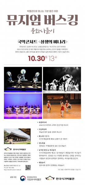 국립부여박물관과 공동으로 추진하는 이번 프로그램은 오는 30일 한국식기박물관 야외마당에서 코로나19 퇴치와 군민의 건강을 기원하는 축원비나리를 시작으로 모듬북난타, 국가무형문화재 제5호 판소리, 전라남도 무형문화재 제18호 진도북춤, 국가무형문화재 제3호 남사당&버나놀이 공연 등으로 진행된다.