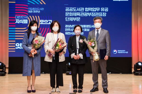 [충청뉴스큐] 제천시립도서관은 지난 26일에 열린 국립중앙도서관 개관 76주년 기념 행사에 참여해 ‘2021년 공공도서관 협력 업무’분야 문화체육관광부장관상을 수상했다.