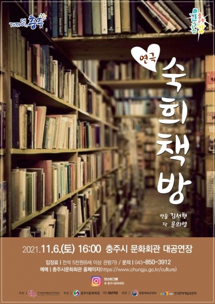 [충청뉴스큐] 연극 ‘숙희책방’이 오는 11월 6일 토요일 오후 4시 충주시문화회관에서 열린다.