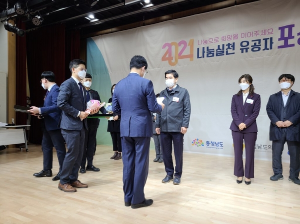 군에 따르면 지난 28일 충남도서관 대강당에서 진행된 ‘2021 나눔실천 유공자 포상식’에서 우수시군으로 선정되어 도지사상을 받았다.