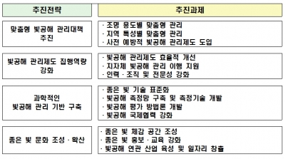 이번에 확정된 빛공해 방지 종합계획의 주요내용은 다음과 같다.