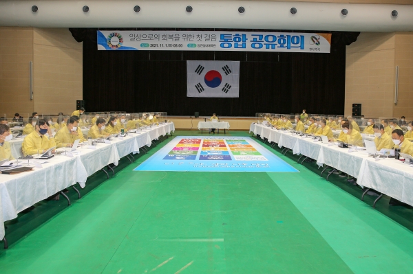 시에 따르면 코로나19로 인해 지난 6월부터 영상회의로 통합공유회의를 진행해왔으나, 일상회복 1단계로 개편된 방역조치에 따라 11월 첫 회의는 부서 간 협업체계 강화를 위해 대면으로 실시됐다.