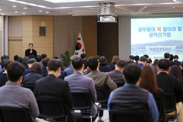 [충청뉴스큐] 충남 서산시가 지난 1일 시청 대회의실에서 직원 100여명을 대상으로 공무원이 알아야 할 ‘공직선거법’에 대해 교육했다.
