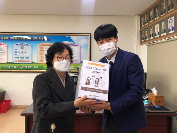 ‘온 맘 다해 응원할게’는 수능을 앞둔 고3 학생을 위해 어르신들이 엄마의 따뜻한 마음을 담은 응원 메시지와 격려 선물을 전하는 프로젝트로 시범적으로 제천고등학교 3학년 학생을 대상, 코로나19 방역수칙을 준수해 각 기관의 최소 인력과 제천시 실버복지관의 대표 어르신 1명, 제천고등학교 3학년 대표 학생 1명이 참석한 가운데 간소하게 진행됐다.