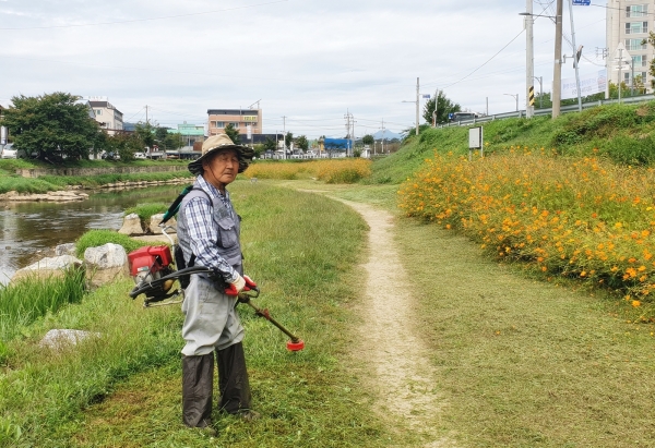 구 씨는 매해 5월부터 10월까지 상방교에서 봉방천변길을 따라 봉계교에 이르는 2㎞ 구간에서 꾸준히 제초작업과 쓰레기 수거 등의 활동을 이어오고 있다.