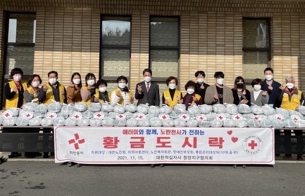 [충청뉴스큐] 대한적십자봉사회 청양지구협의회가 지난 15일 군내 취약계층을 돕기 위한 황금도시락 캠페인을 전개했다.