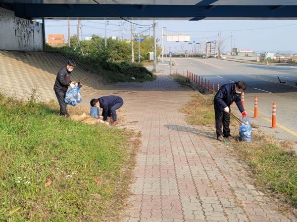 이날 도시계획과 직원들은 주민 왕래가 잦은 인주면 행정복지센터부터 마을입구 및 안길, 인가 주변 등 취약지역에 버려진 쓰레기를 수거하며 깨끗하고 쾌적한 마을을 만들기 위해 노력했다.