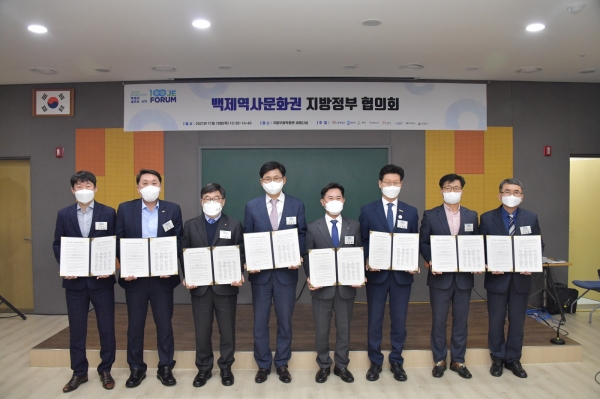 제1부 백제역사문화권 지방정부회의에서는 14개 지자체 대표들이 참석해 백제문명의 가치 선양과 백제역사문화도시 간 지속가능한 상생발전을 위해 백제역사문화권 지방정부협의회 구성을 논의하고 업무협약을 체결했다.