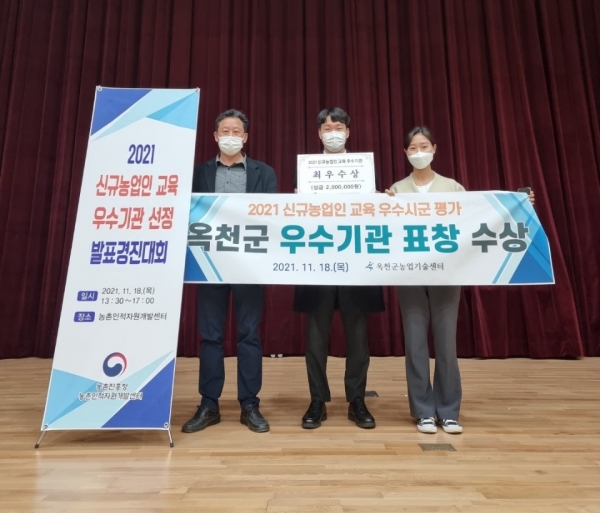 [충청뉴스큐] 옥천군농업기술센터는 농촌진흥청에서 주관한 전국단위‘2021년 신규농업인 교육 우수기관 경진’분야에서 최우수기관 표창을 받는 쾌거를 이뤘다고 밝혔다.