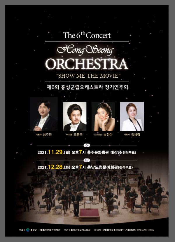 군에 따르면 오는 11월 29일 19시 홍주문화회관 대공연장과 12월 28일 19시 충남문예회관 대강당에서“Show me the movie”라는 주제의 공연을 무대에 올린다.