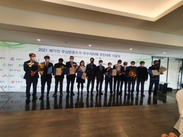 전국 243개 지방자치단체를 대상으로 한 이번 경진대회는 폐가전 방문수거 실적 사업 운영 지자체 협조체계 홍보 실적 우수사례 등 4개 항목에 대해 서면심사와 현장심사가 이뤄진 가운데 진행됐다.