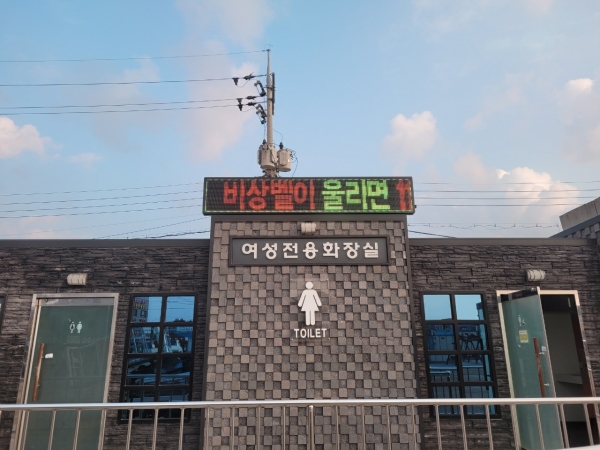 군에 따르면 올해 홍성천공영주차장과 남당항주차장 공중화장실에 안심불빛 LED 안내판을 시범적으로 설치했으며 내년에도 관광지 등 주요 공중화장실에 추가 설치할 계획이라고 전했다.