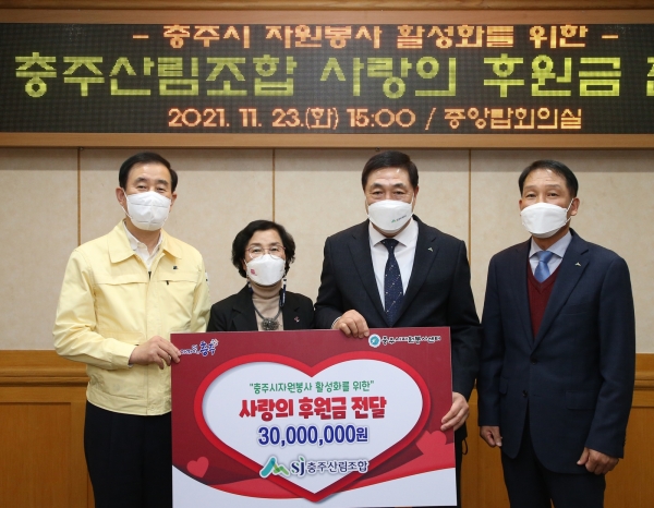 [충청뉴스큐] 충주산림조합은 충주시 중앙탑회의실에서 자원봉사 활성화를 위한 후원금 3천만원 기탁식을 가졌다고 24일 밝혔다.