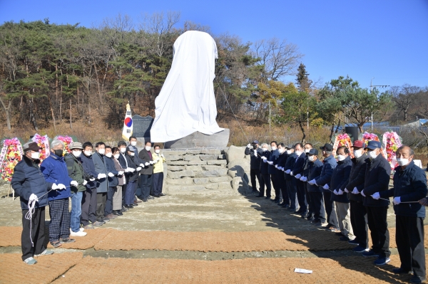 [충청뉴스큐] 부여군은 지난 27일 내산면 지티리에서 ‘홍주의병 지티봉기 기념비’ 제막식을 건립위원회 위원 등 주민 90여명이 참석한 가운데 코로나19 방역지침을 준수하며 개최했다.