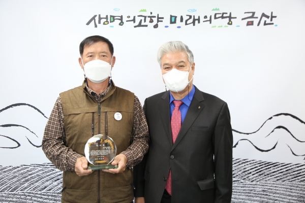 [충청뉴스큐] 금산군은 지난 29일 금산 사랑을 실천에 대한 감사를 표현하기 위해 대전개인택시 금산향우회 김영범 총무와 김홍령 재무총무에게 감사패를 수여했다.