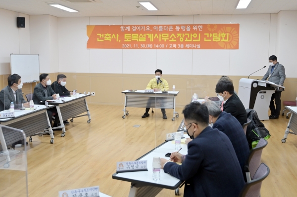 김정섭 시장은 “개발 관련 인허가는 설계사무소와 행정청이 하나의 목표를 가지고 같은 업무를 하는 것”이라며 “시민 편의와 공주시 발전의 기초가 될 수 있도록 시와 설계사무소가 앞으로도 지속적으로 활발한 소통과 협업에 나서줄 것을 당부드린다”고 말했다.