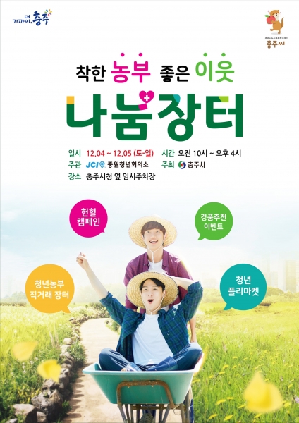 [충청뉴스큐] 충주시가 이번 주말을 이용해 ‘착한 농부 좋은 이웃 나눔 장터’를 개최한다고 밝혔다.