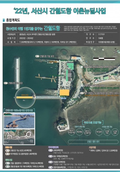 사업선정으로 시는 2026년까지 73억을 투입해 간월도항 기능 보강과 공동작업장, 어구어망창고 구축, 웰컴센터 리모델링, 간판정비 등 경관개선에 나선다.