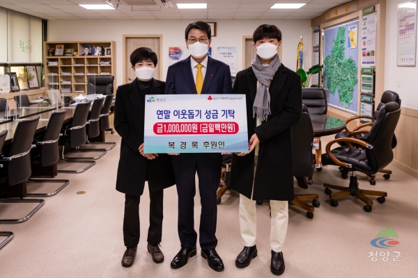 청양읍 읍내리 복경록 씨도 9일 청양군을 찾아 성금 100만원을 전달했다.
