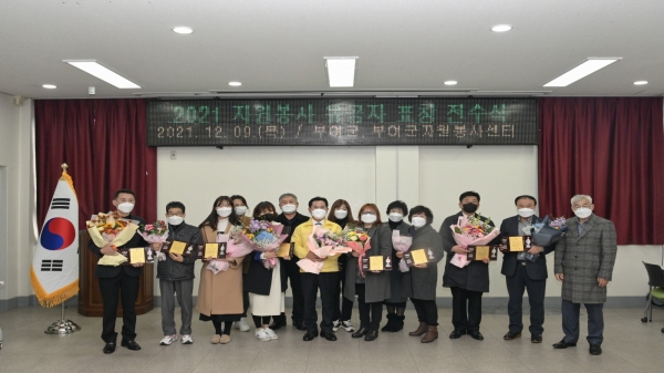[충청뉴스큐] 부여군은 자원봉사자의 날을 맞아 다양한 분야에서 한 해 동안 이웃에게 나눔과 배려 활동을 펼친 자원봉사자의 노고를 격려하기 위해 2021년 자원봉사 유공자 표창 수여식을 개최했다.