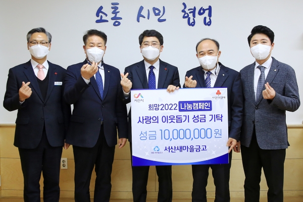 [충청뉴스큐] 충남 서산새마을금고가 지난 14일 어려운 이웃을 위해 ‘서산시 희망2022 나눔캠페인’에 성금 1천만원을 기탁했다.