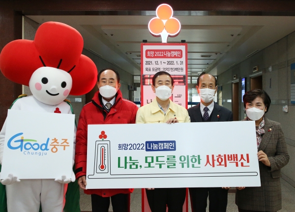 [충청뉴스큐] 충주시는 15일 충주시청 로비에서‘희망 2022 나눔 캠페인’사랑의 온도탑 제막식을 열었다.