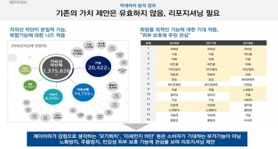 우수사례 중 초콜릿 제조·판매 기업 ‘제키스’와 올레길 기념품 제작·판매 기업 ‘퐁낭’의 사례를 보면, 제키스는 초콜릿브랜드 마케팅 방향과 온라인몰 활성화를 위해 블로그, 카페, 뉴스, 인스타그램, 자사 온라인쇼핑몰 등의 데이터를 분석해 소비자들이 초콜릿브랜드가 아닌 단순 기념품으로 인식하고 있다는 문제점을 도출했다.