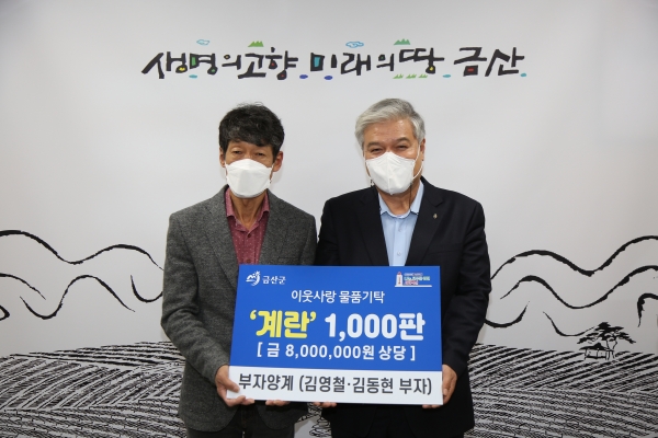 [충청뉴스큐] 금산 부자양계는 지난 16일 금산군의 어려운 이웃을 위해 써달라며 사랑의 인삼계란 1000판을 금산군에 기탁했다.
