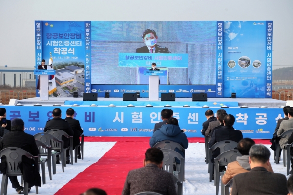 이후 2020년 2월부터 기본계획 수립, 지방재정 중앙 투자심사, 조달청 맞춤형 서비스 약정 등을 거쳐, 올해 10월 실시설계를 완료하고 12월 시공사를 선정해 항공보안장비 시험인증센터를 착공하게 됐다.