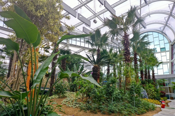 이번에 준공된 레인보우식물원은 부지면적 7,900㎡, 건축면적 1,663㎡ 규모로 아열대식물 213종 11,328주를 식재했다.