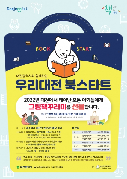 [충청뉴스큐] 대전시는 2022년 대전에서 태어나는 모든 아기들을 대상으로 그림책 꾸러미를 선물하는 ‘우리대전 북스타트’ 사업을 실시한다고 밝혔다.