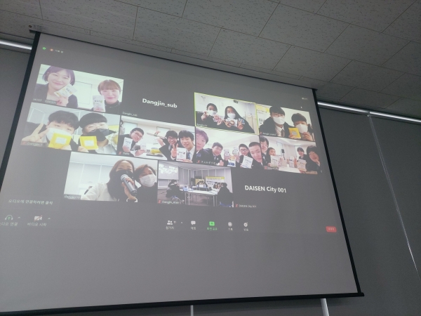 이번 화상 교류는 당진중학교 1학년 학생 6명과 다이센시 니시센보쿠 1~2학년 학생 11명이 참여해 코로나19로 중단됐던 청소년 교류를 온라인을 통해 양 도시 소개 및 서로의 관심사 등을 영어와 각국의 언어로 진행하며 우정을 쌓았다.