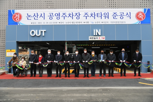 논산시는 29일 내동 825번지에서 황명선 논산시장을 비롯해 구본선 논산시의회의장, 김형도 도의원, 오인환 도의원, 논산시의회 의원 등이 참석한 가운데 ‘논산시 공영주차장 주차타워 준공 기념식’을 가졌다.