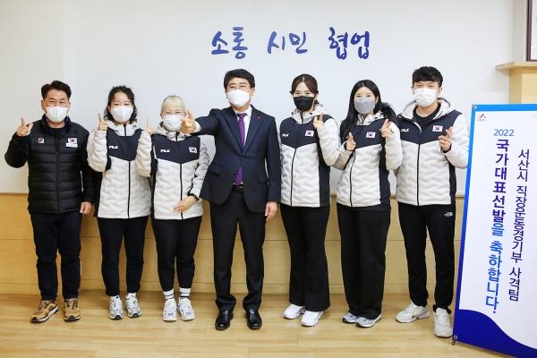 맹정호 서산시장은 29일 시장실에서 선수들과 만나 국가대표 선발을 축하했다.