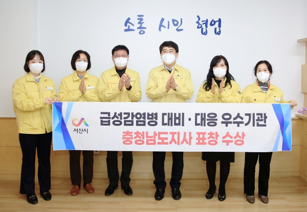 [충청뉴스큐] 충남 서산시가 충남도 주관 2021 급성 감염병 대비·대응 업무 분야에서 우수기관으로 선정돼 도지사 표창을 받았다.