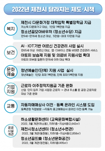 시 관계자는 “2022년 달라지는 제천시 시정 및 정부시책에 대해 시민들이 잘 알고 활용할 수 있도록 적극 홍보에 나서겠다”고 밝혔다.