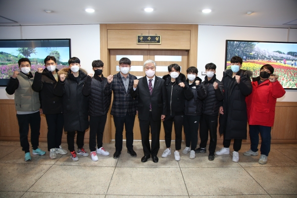 문정우 금산군수는 지난 5일 금산군청에서 사이클팀 선수들을 만나 새롭게 팀에 합류한 선수들을 환영하고 훈련 및 대회 출전에 대한 계획을 들었다.